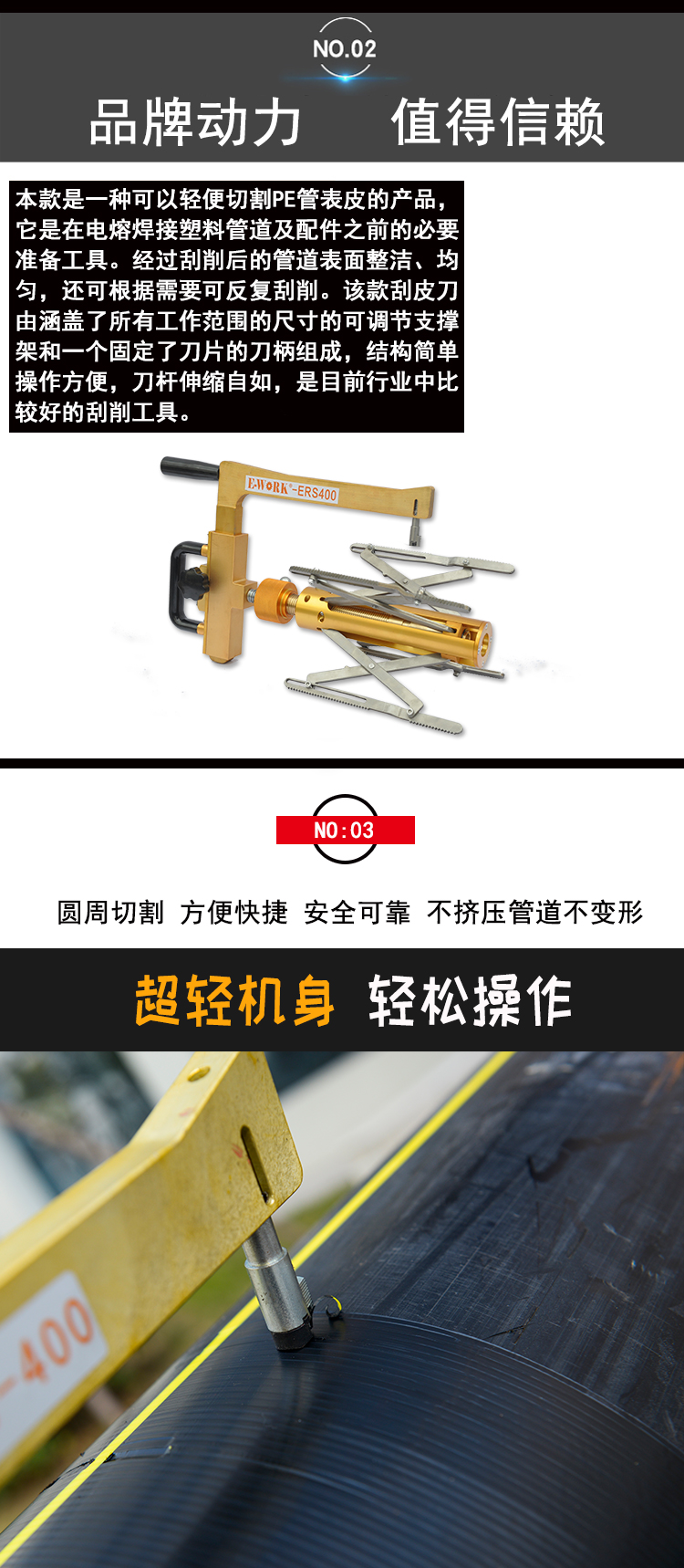 易沃克旋轉(zhuǎn)式PE管刮皮刀ERS200 去氧化層刮刀
